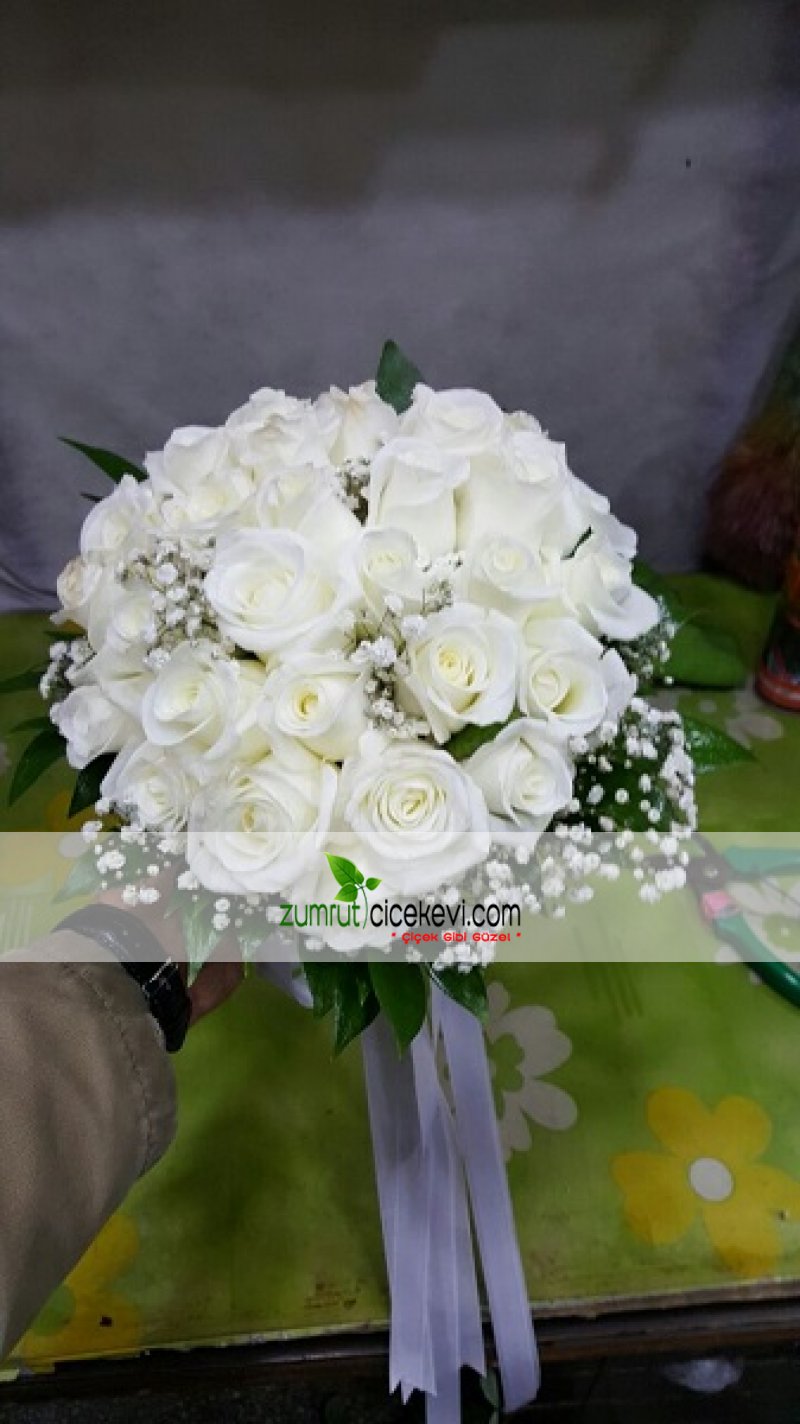 30 Beyaz Gül Gelin El Buketi