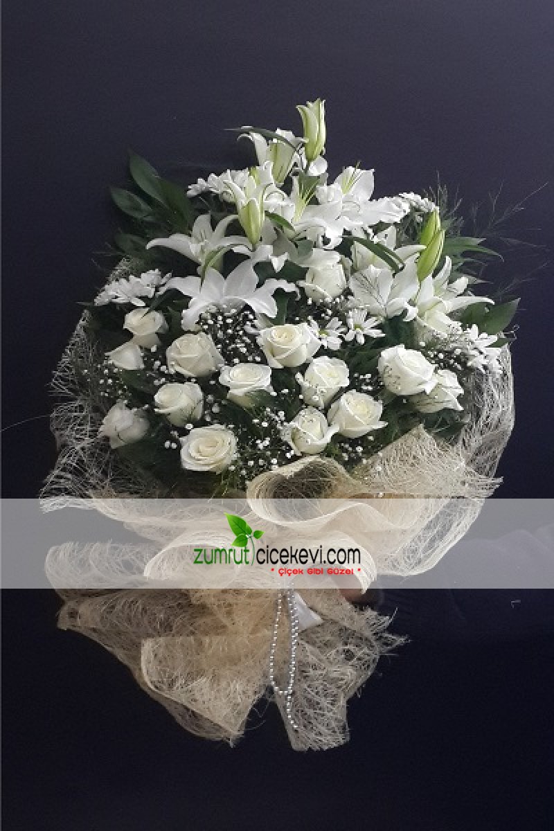 Beyaz Gül Ve Beyaz Kazablankalardan Hazırlanmış İsteme Buketi